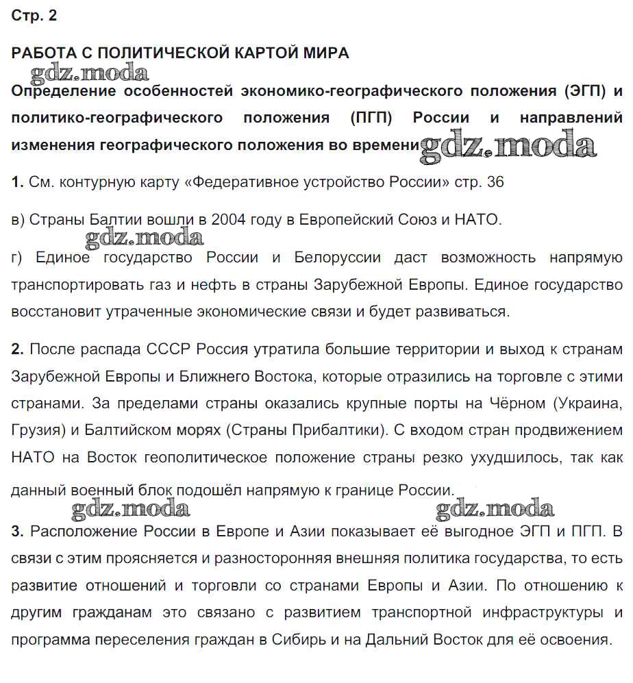 ГДЗ решение к заданию № 2 География России. Население и хозяйство 9 класс Рабочая тетрадь с контурными картами Сиротин В.И. Дрофа 2020 ФГОС бесплатно на гдз.мода!
