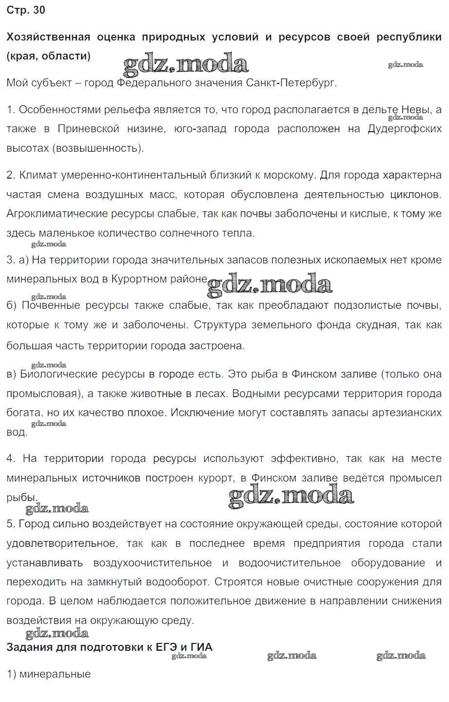 ГДЗ решение к заданию № 30 География России. Население и хозяйство 9 класс Рабочая тетрадь с контурными картами Сиротин В.И. Дрофа 2020 ФГОС бесплатно на гдз.мода!