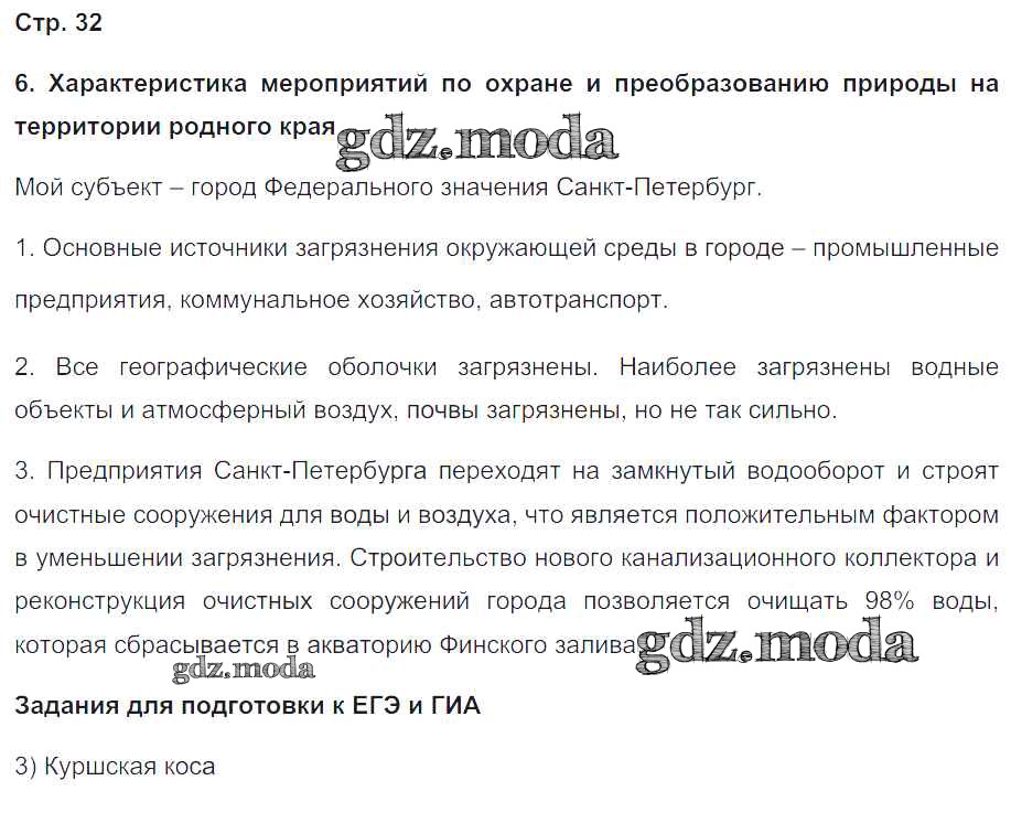 ГДЗ решение к заданию № 32 География России. Население и хозяйство 9 класс Рабочая тетрадь с контурными картами Сиротин В.И. Дрофа 2020 ФГОС бесплатно на гдз.мода!