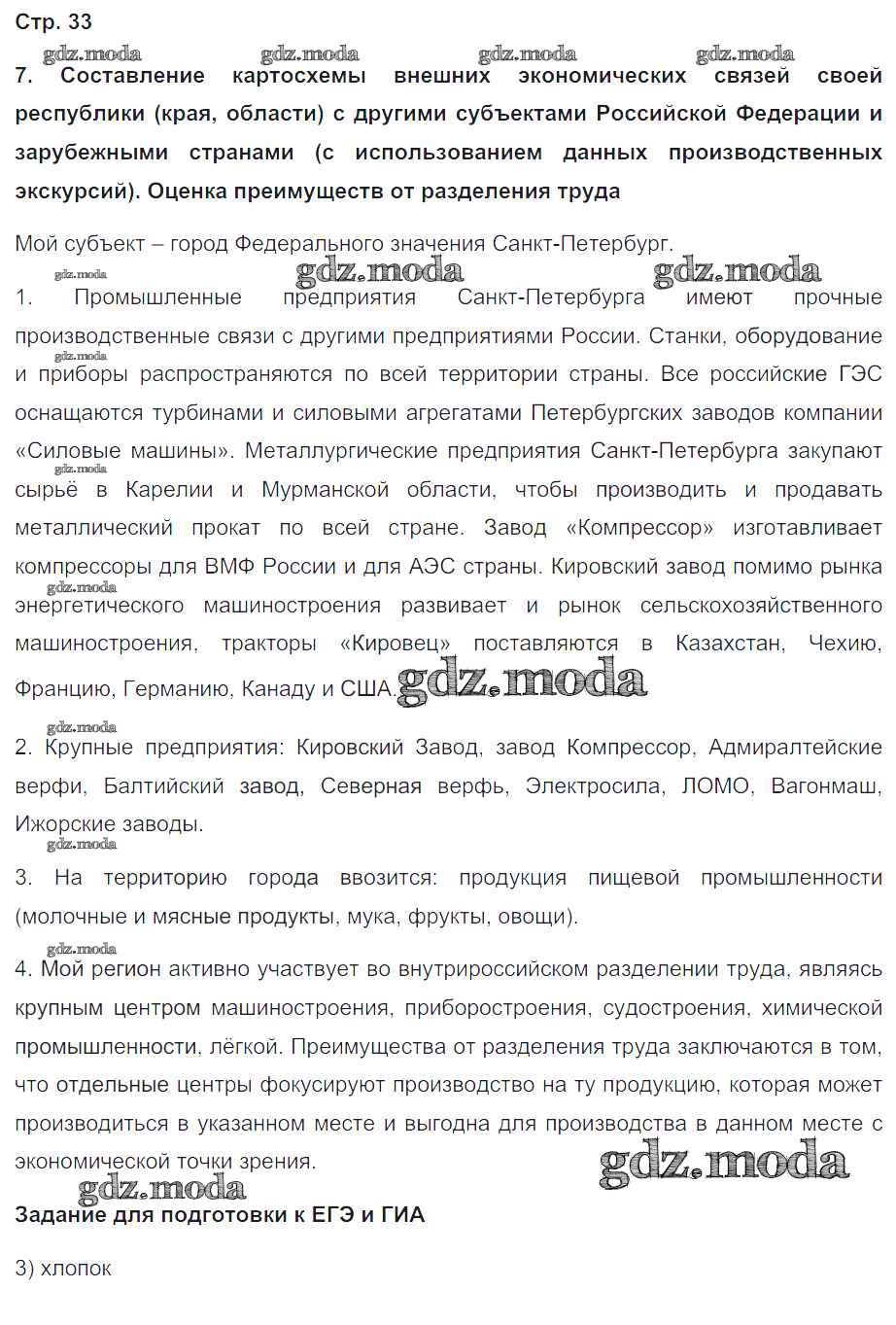 ГДЗ решение к заданию № 33 География России. Население и хозяйство 9 класс Рабочая тетрадь с контурными картами Сиротин В.И. Дрофа 2020 ФГОС бесплатно на гдз.мода!