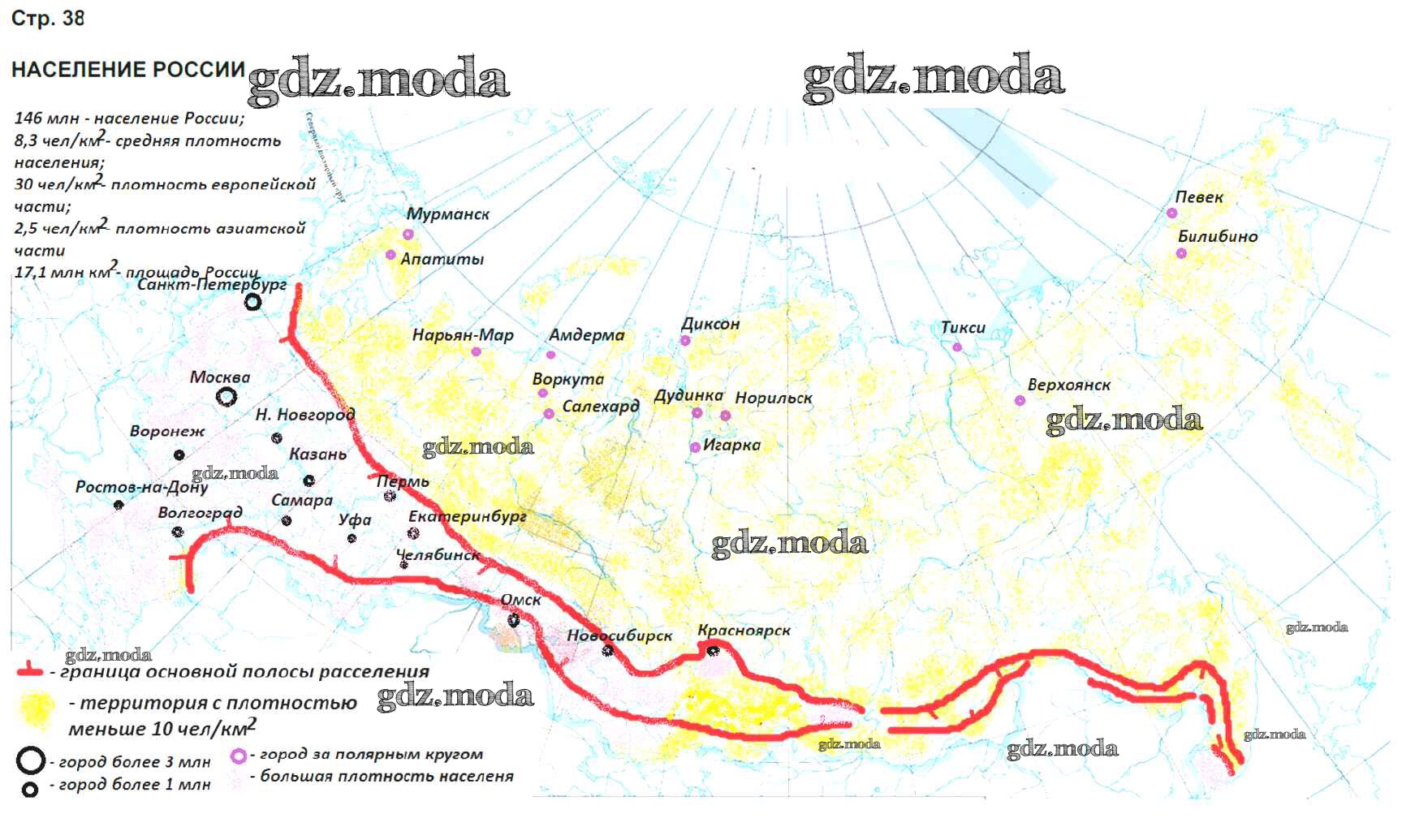 ГДЗ решение к заданию № 38 География России. Население и хозяйство 9 класс Рабочая тетрадь с контурными картами Сиротин В.И. Дрофа 2020 ФГОС бесплатно на гдз.мода!