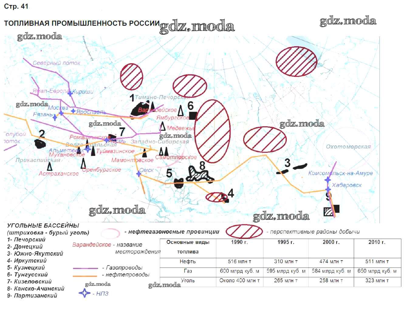 ГДЗ решение к заданию № 41 География России. Население и хозяйство 9 класс Рабочая тетрадь с контурными картами Сиротин В.И. Дрофа 2020 ФГОС бесплатно на гдз.мода!