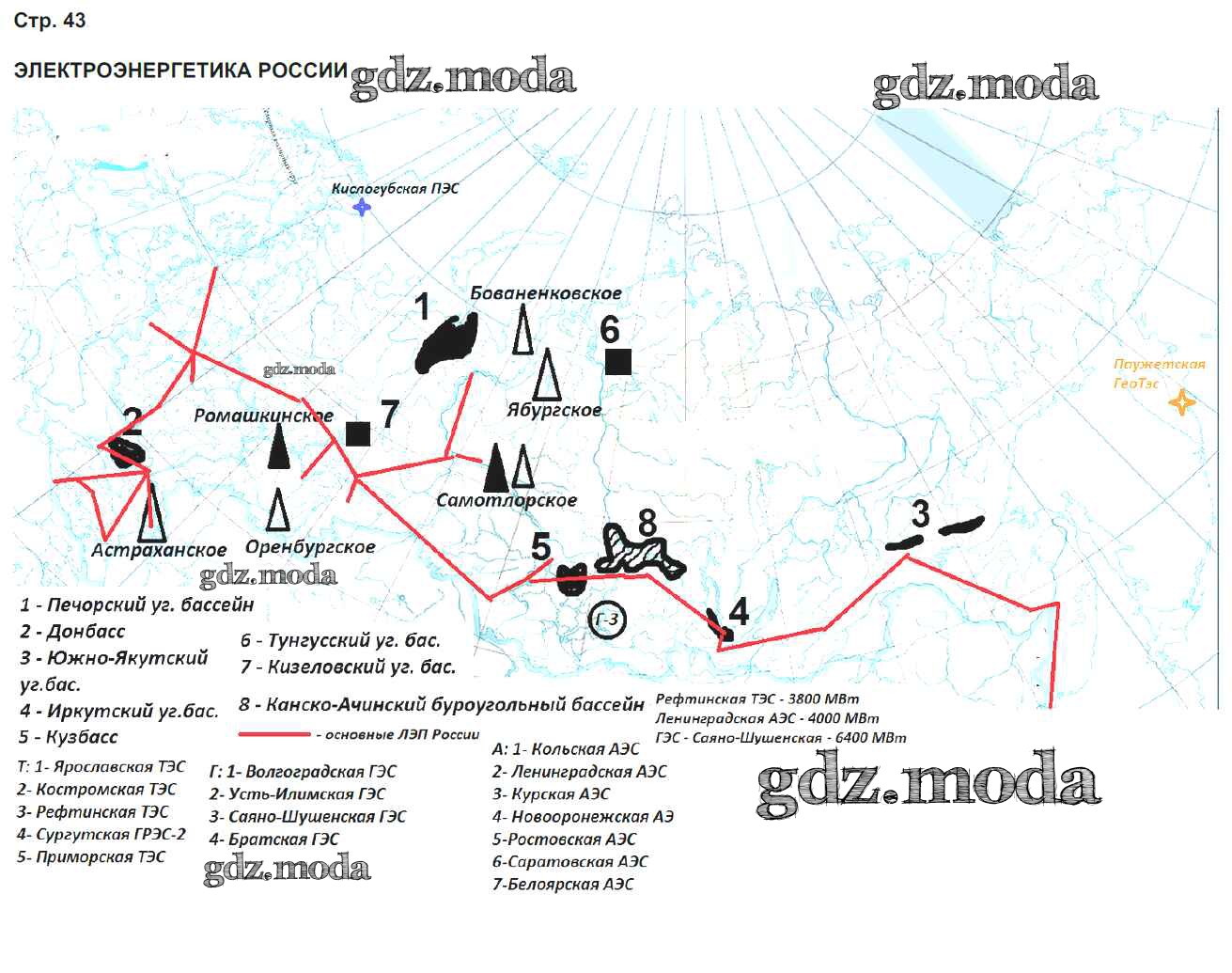 ГДЗ решение к заданию № 43 География России. Население и хозяйство 9 класс Рабочая тетрадь с контурными картами Сиротин В.И. Дрофа 2020 ФГОС бесплатно на гдз.мода!