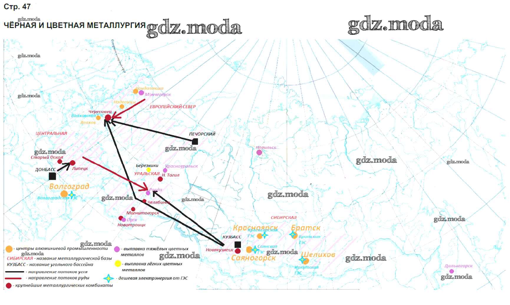 ГДЗ решение к заданию № 47 География России. Население и хозяйство 9 класс Рабочая тетрадь с контурными картами Сиротин В.И. Дрофа 2020 ФГОС бесплатно на гдз.мода!