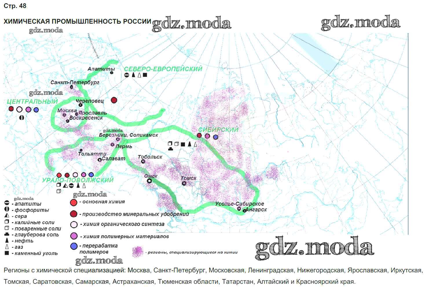 ГДЗ решение к заданию № 48 География России. Население и хозяйство 9 класс Рабочая тетрадь с контурными картами Сиротин В.И. Дрофа 2020 ФГОС бесплатно на гдз.мода!