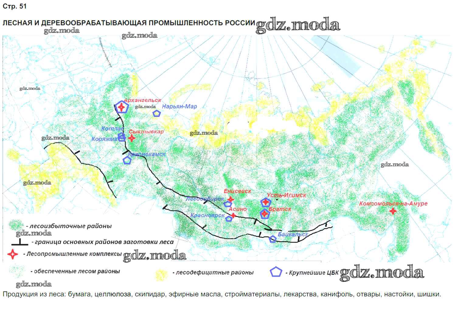 ГДЗ решение к заданию № 51 География России. Население и хозяйство 9 класс Рабочая тетрадь с контурными картами Сиротин В.И. Дрофа 2020 ФГОС бесплатно на гдз.мода!