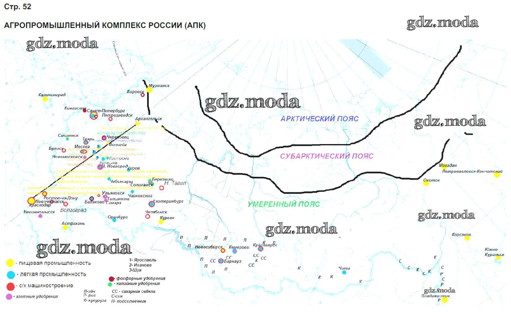ГДЗ решение к заданию № 52 География России. Население и хозяйство 9 класс Рабочая тетрадь с контурными картами Сиротин В.И. Дрофа 2020 ФГОС бесплатно на гдз.мода!