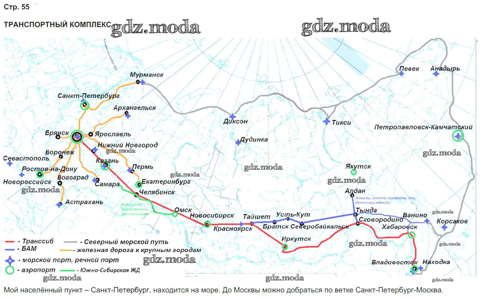ГДЗ решение к заданию № 55 География России. Население и хозяйство 9 класс Рабочая тетрадь с контурными картами Сиротин В.И. Дрофа 2020 ФГОС бесплатно на гдз.мода!