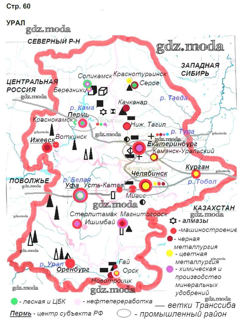 ГДЗ решение к заданию № 60 География России. Население и хозяйство 9 класс Рабочая тетрадь с контурными картами Сиротин В.И. Дрофа 2020 ФГОС бесплатно на гдз.мода!