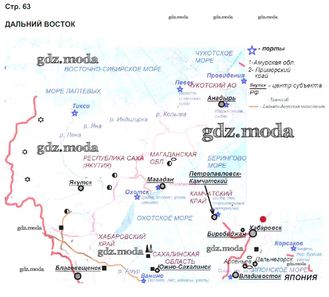 ГДЗ решение к заданию № 63 География России. Население и хозяйство 9 класс Рабочая тетрадь с контурными картами Сиротин В.И. Дрофа 2020 ФГОС бесплатно на гдз.мода!