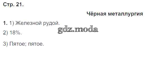 ГДЗ решение к заданию № 21 География 9 класс рабочая тетрадь Таможняя Е.А. Вентана-граф 2017 ФГОС бесплатно на гдз.мода!
