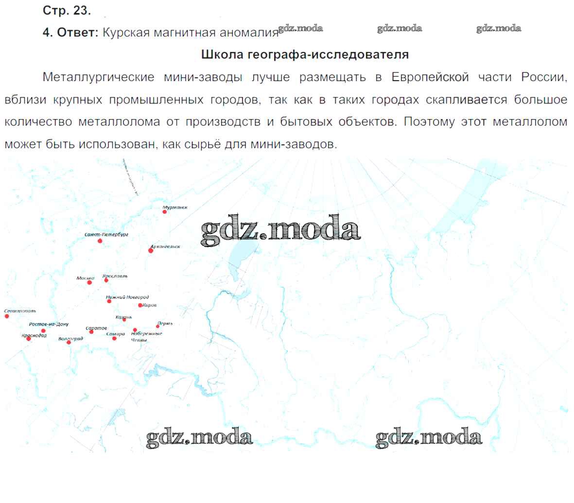 ГДЗ решение к заданию № 23 География 9 класс рабочая тетрадь Таможняя Е.А. Вентана-граф 2017 ФГОС бесплатно на гдз.мода!