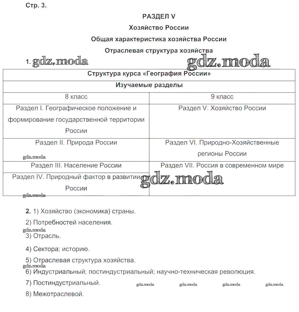 ГДЗ решение к заданию № 3 География 9 класс рабочая тетрадь Таможняя Е.А. Вентана-граф 2017 ФГОС бесплатно на гдз.мода!
