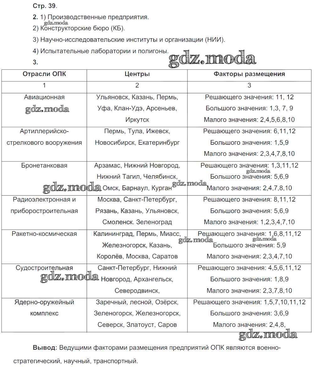 ГДЗ решение к заданию № 39 География 9 класс рабочая тетрадь Таможняя Е.А. Вентана-граф 2017 ФГОС бесплатно на гдз.мода!