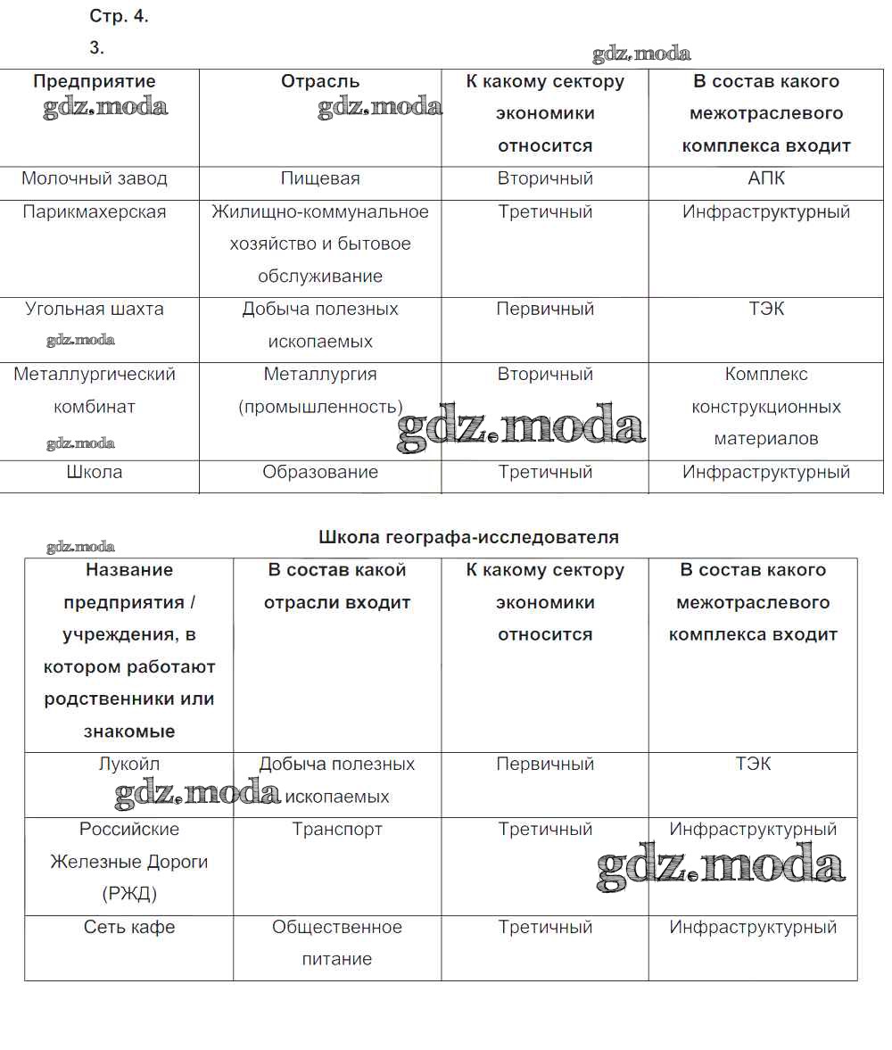 ГДЗ решение к заданию № 4 География 9 класс рабочая тетрадь Таможняя Е.А. Вентана-граф 2017 ФГОС бесплатно на гдз.мода!