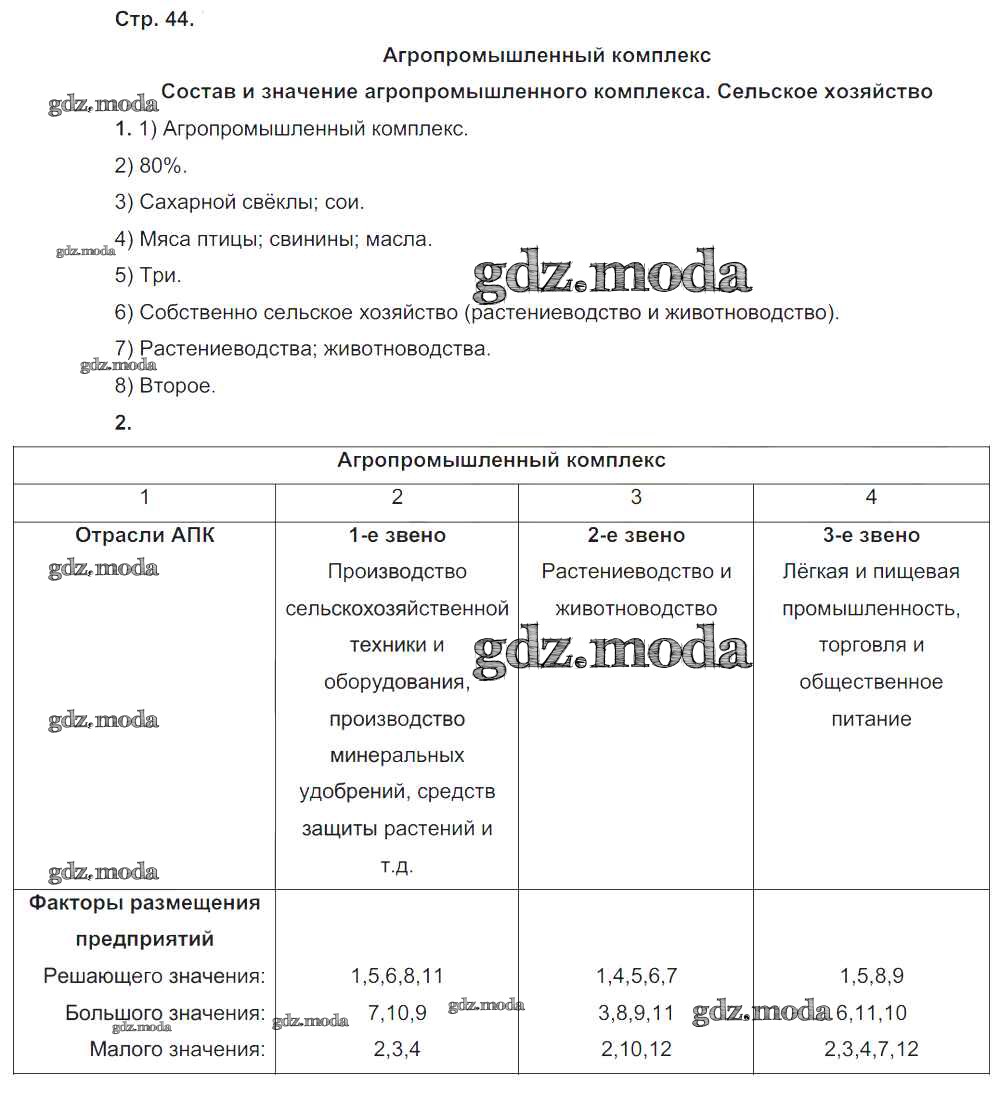 ГДЗ решение к заданию № 44 География 9 класс рабочая тетрадь Таможняя Е.А. Вентана-граф 2017 ФГОС бесплатно на гдз.мода!