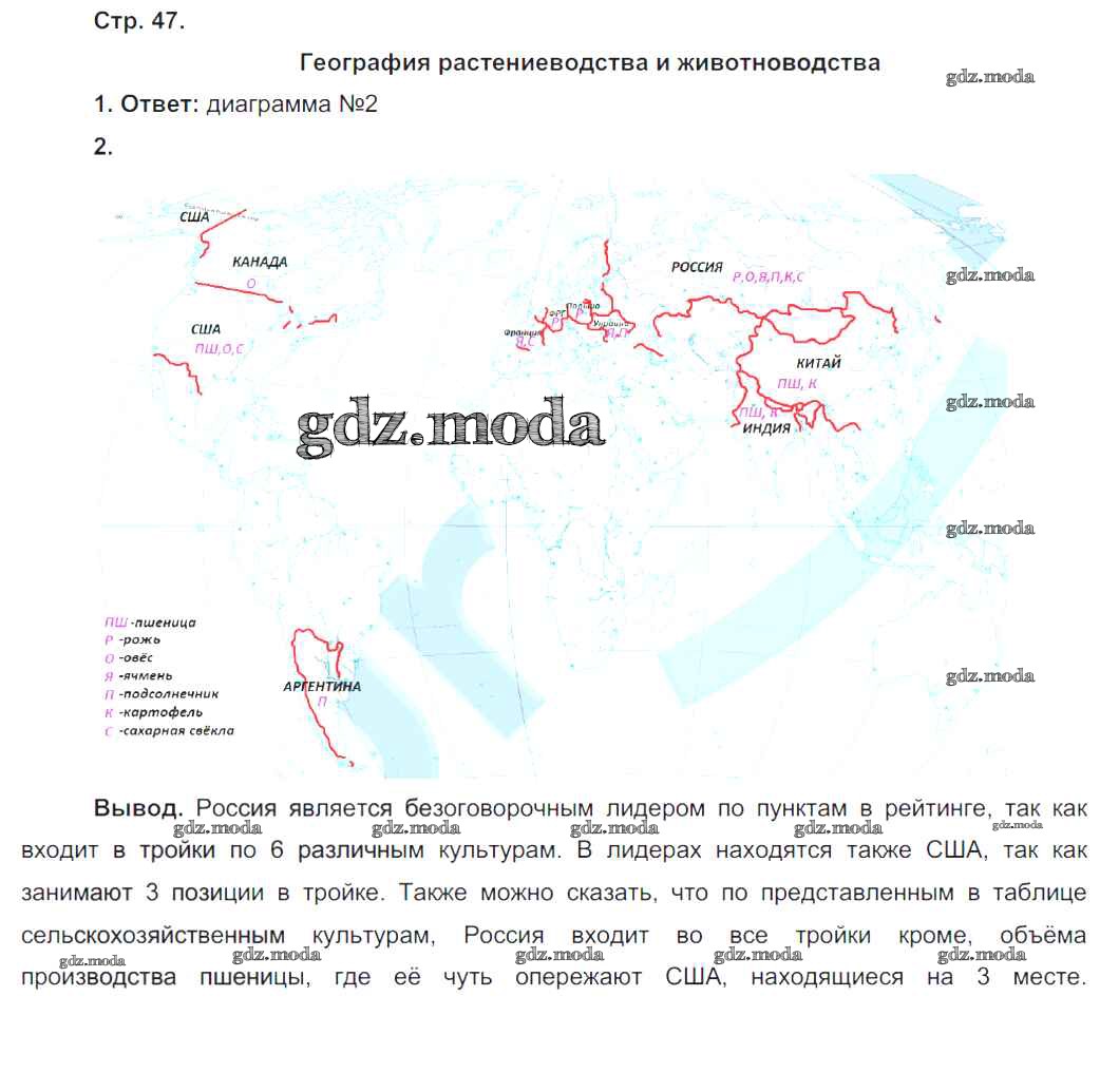 ГДЗ решение к заданию № 47 География 9 класс рабочая тетрадь Таможняя Е.А. Вентана-граф 2017 ФГОС бесплатно на гдз.мода!