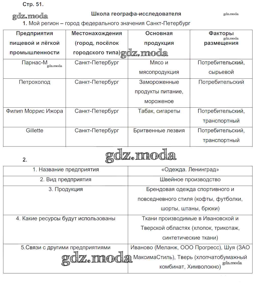 ГДЗ решение к заданию № 51 География 9 класс рабочая тетрадь Таможняя Е.А. Вентана-граф 2017 ФГОС бесплатно на гдз.мода!