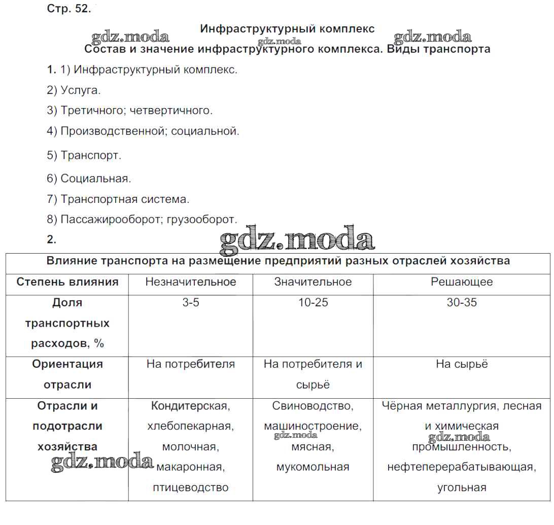 ГДЗ решение к заданию № 52 География 9 класс рабочая тетрадь Таможняя Е.А. Вентана-граф 2017 ФГОС бесплатно на гдз.мода!