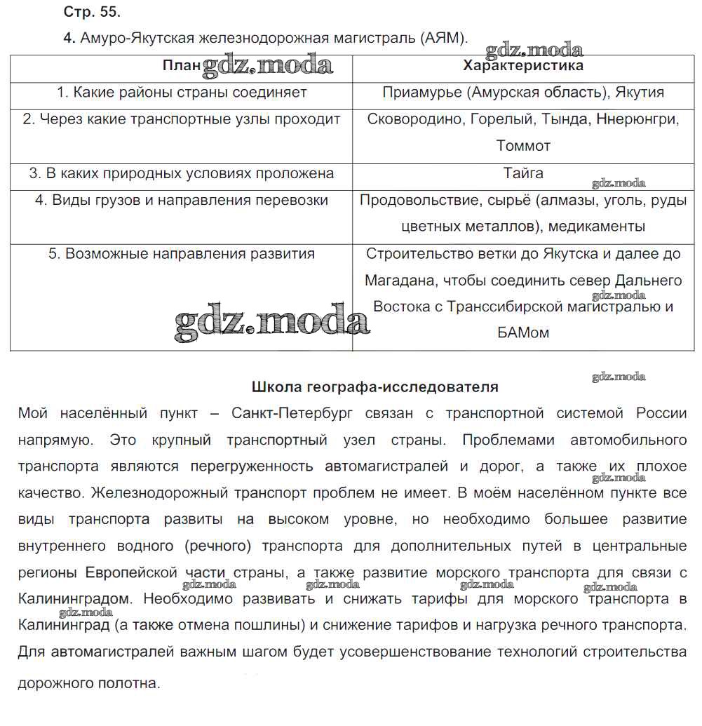 ГДЗ решение к заданию № 55 География 9 класс рабочая тетрадь Таможняя Е.А. Вентана-граф 2017 ФГОС бесплатно на гдз.мода!