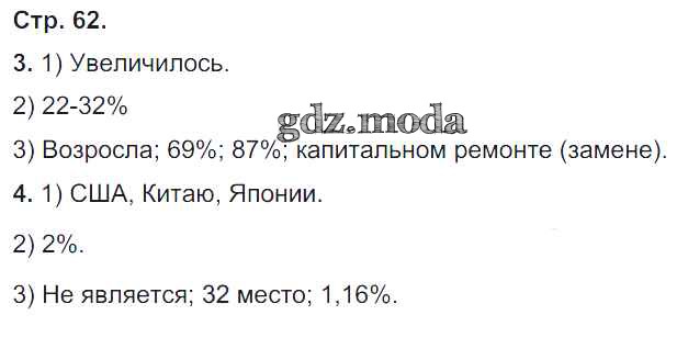 ГДЗ решение к заданию № 62 География 9 класс рабочая тетрадь Таможняя Е.А. Вентана-граф 2017 ФГОС бесплатно на гдз.мода!