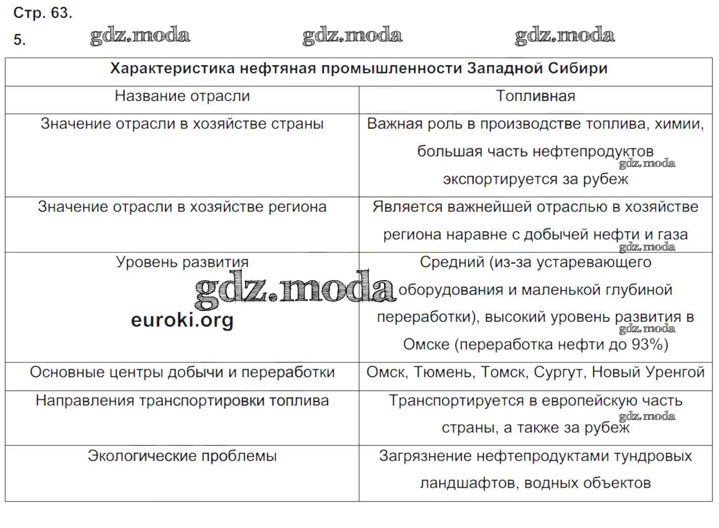 ГДЗ решение к заданию № 63 География 9 класс рабочая тетрадь Таможняя Е.А. Вентана-граф 2017 ФГОС бесплатно на гдз.мода!