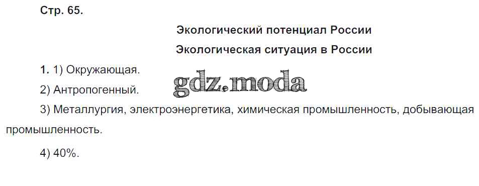 ГДЗ решение к заданию № 65 География 9 класс рабочая тетрадь Таможняя Е.А. Вентана-граф 2017 ФГОС бесплатно на гдз.мода!