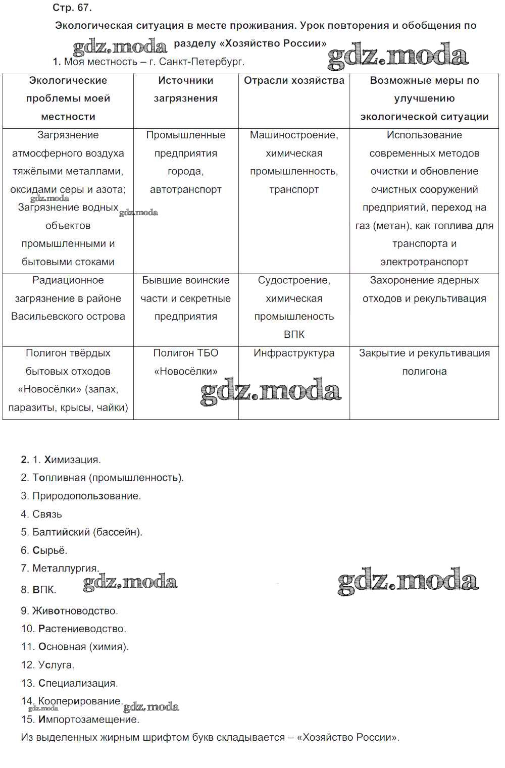 ГДЗ решение к заданию № 67 География 9 класс рабочая тетрадь Таможняя Е.А. Вентана-граф 2017 ФГОС бесплатно на гдз.мода!