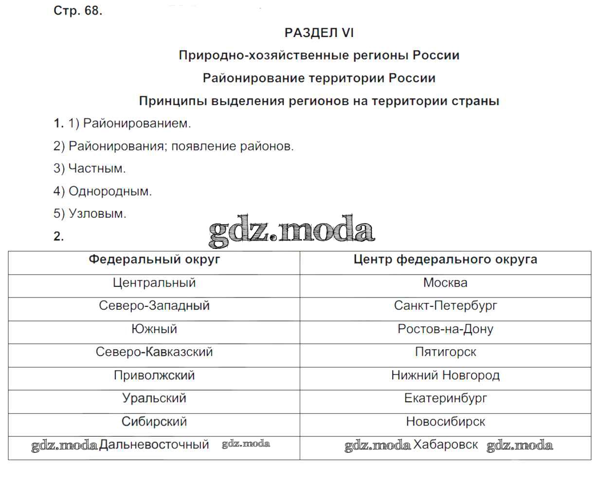 ГДЗ решение к заданию № 68 География 9 класс рабочая тетрадь Таможняя Е.А. Вентана-граф 2017 ФГОС бесплатно на гдз.мода!