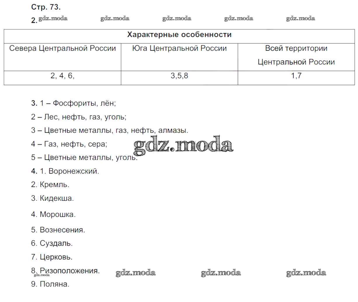 ГДЗ решение к заданию № 73 География 9 класс рабочая тетрадь Таможняя Е.А. Вентана-граф 2017 ФГОС бесплатно на гдз.мода!