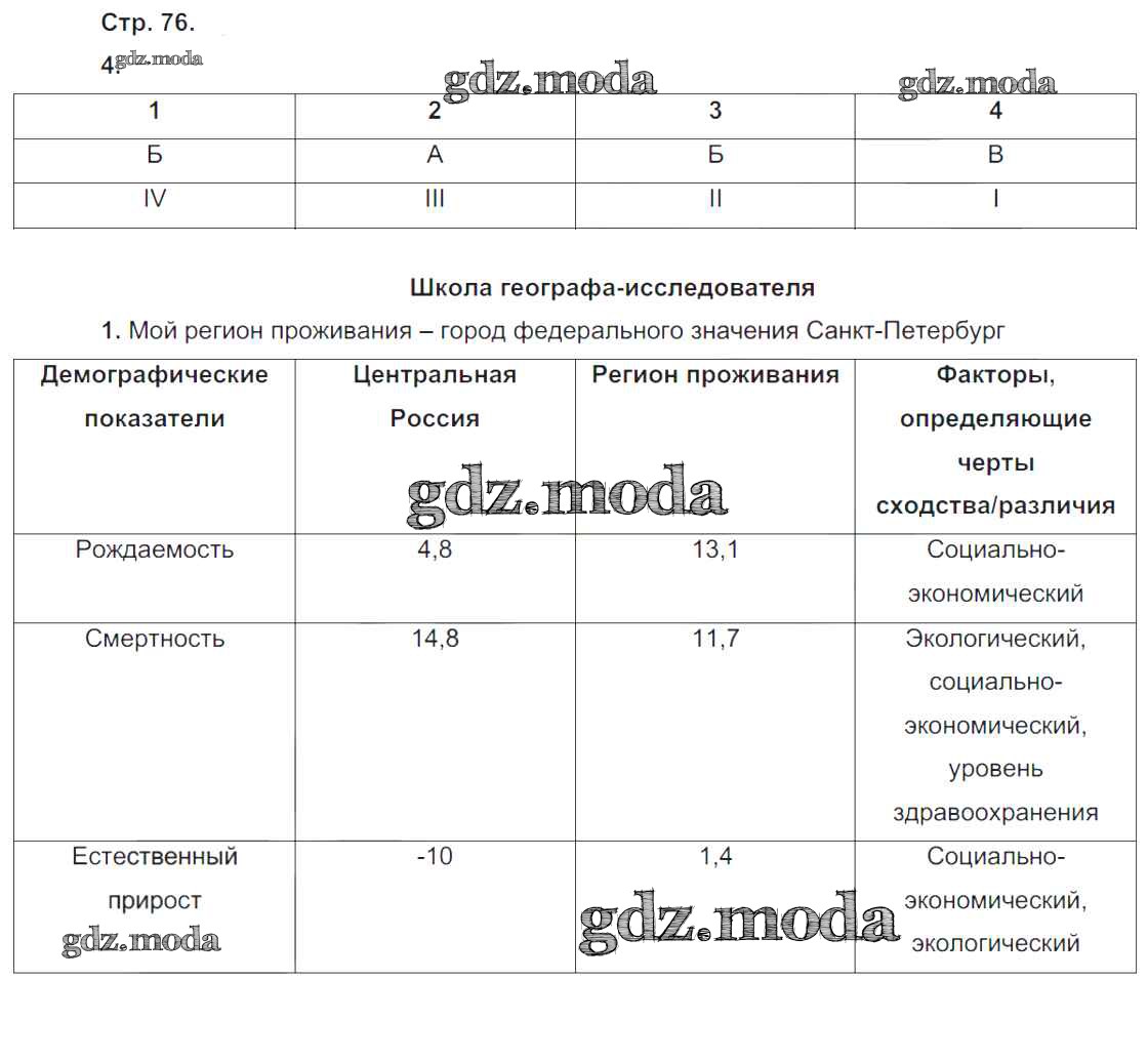ГДЗ решение к заданию № 76 География 9 класс рабочая тетрадь Таможняя Е.А. Вентана-граф 2017 ФГОС бесплатно на гдз.мода!