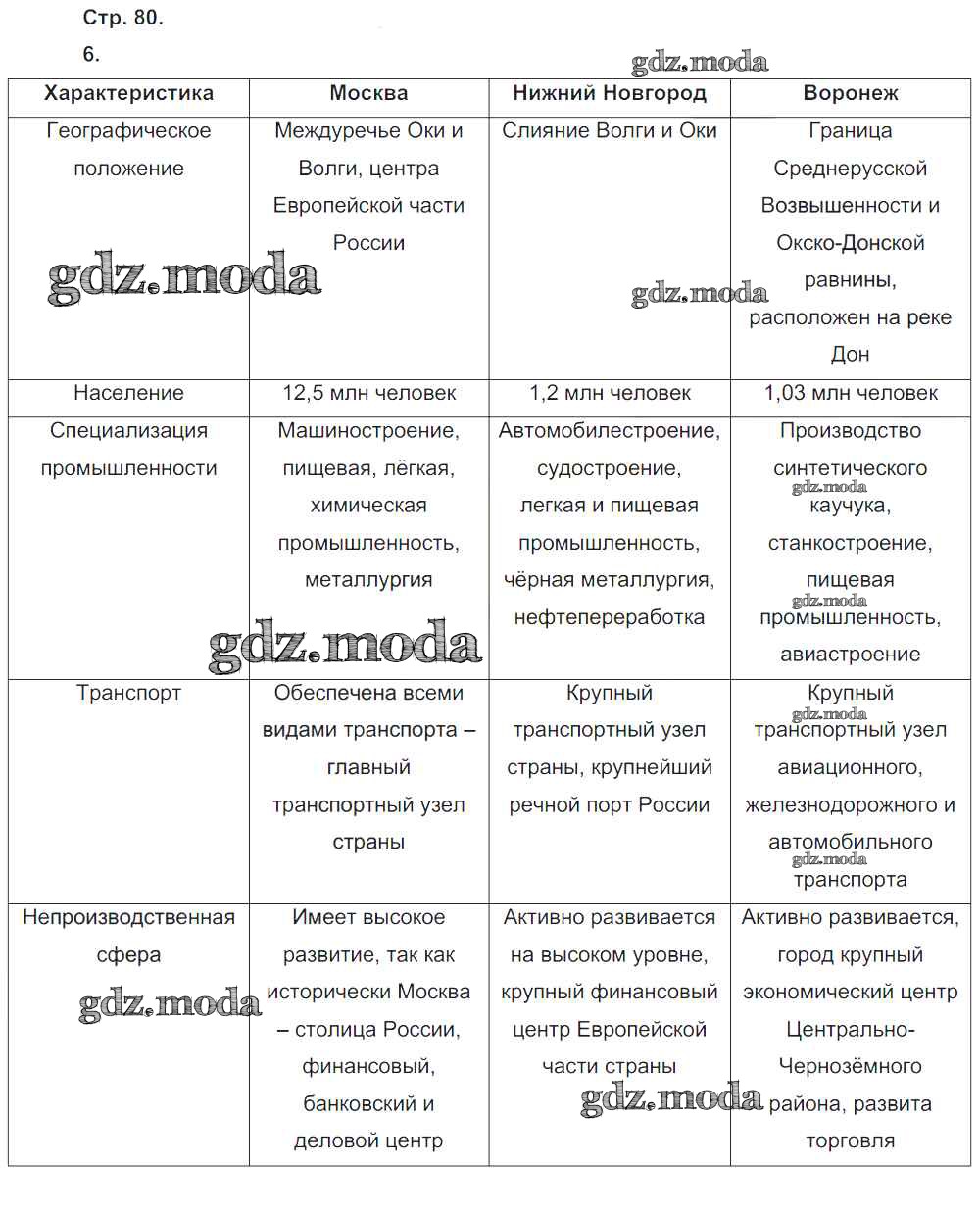 ГДЗ решение к заданию № 80 География 9 класс рабочая тетрадь Таможняя Е.А. Вентана-граф 2017 ФГОС бесплатно на гдз.мода!