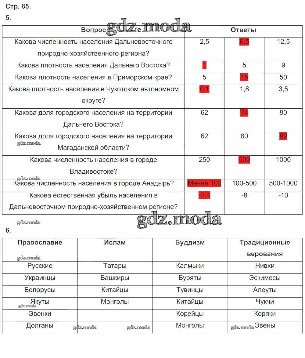 ГДЗ решение к заданию № 85 География 9 класс рабочая тетрадь Таможняя Е.А. Вентана-граф 2017 ФГОС бесплатно на гдз.мода!