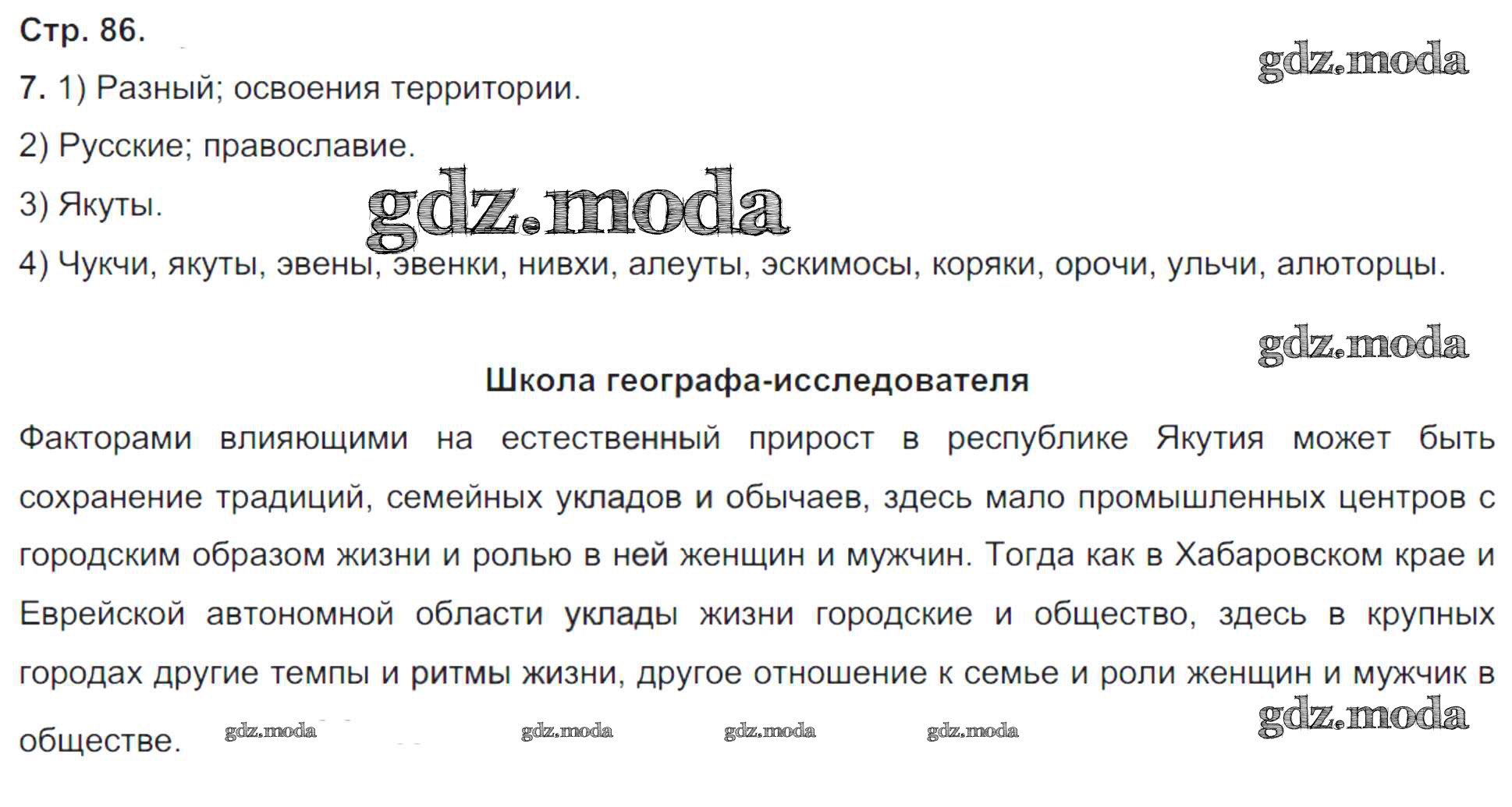 ГДЗ решение к заданию № 86 География 9 класс рабочая тетрадь Таможняя Е.А. Вентана-граф 2017 ФГОС бесплатно на гдз.мода!