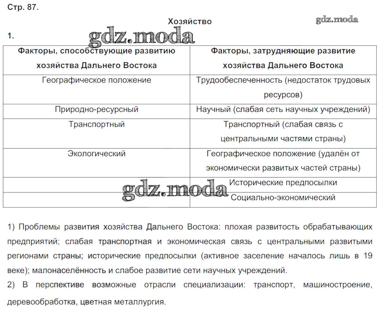 ГДЗ решение к заданию № 87 География 9 класс рабочая тетрадь Таможняя Е.А. Вентана-граф 2017 ФГОС бесплатно на гдз.мода!