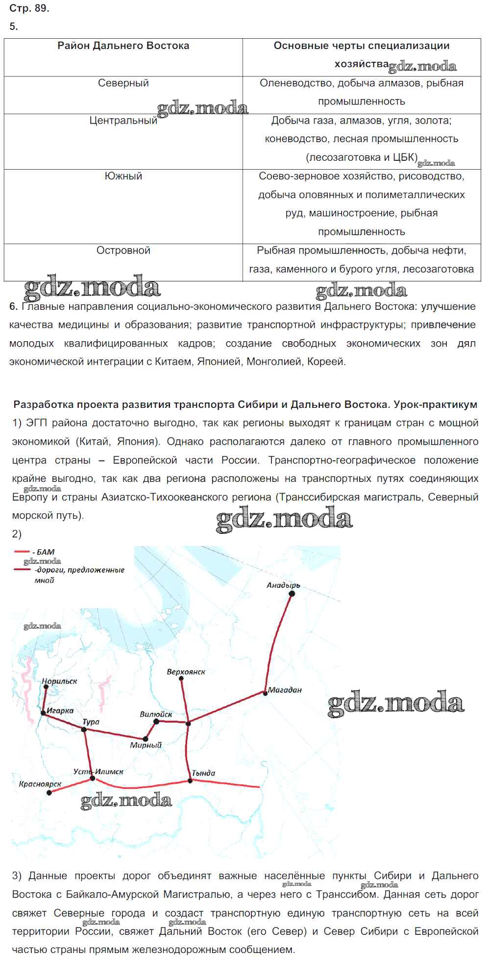 ГДЗ решение к заданию № 89 География 9 класс рабочая тетрадь Таможняя Е.А. Вентана-граф 2017 ФГОС бесплатно на гдз.мода!