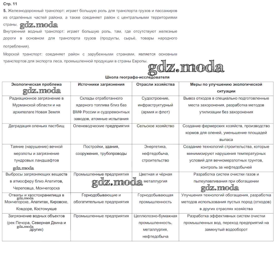 ГДЗ решение к заданию № 11 География 9 класс рабочая тетрадь Таможняя Е.А. Вентана-граф 2017 ФГОС бесплатно на гдз.мода!
