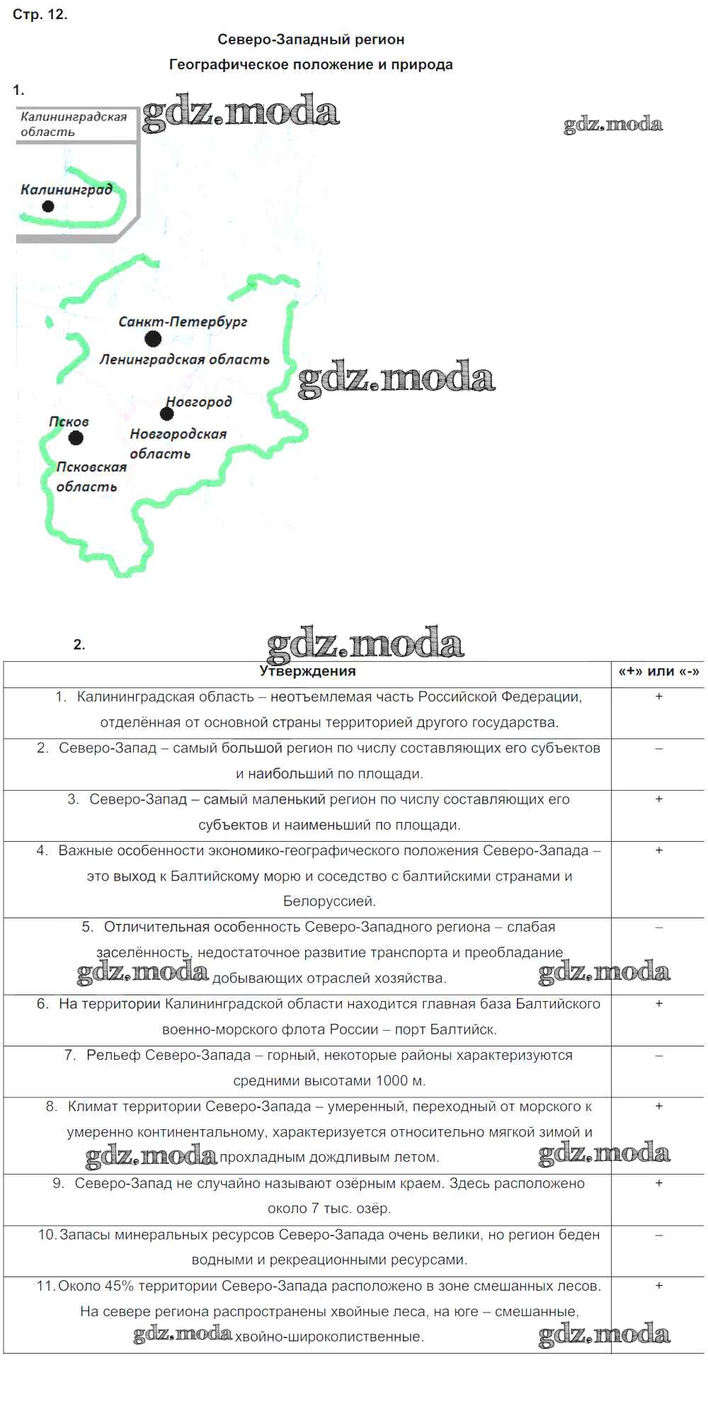ГДЗ решение к заданию № 12 География 9 класс рабочая тетрадь Таможняя Е.А. Вентана-граф 2017 ФГОС бесплатно на гдз.мода!