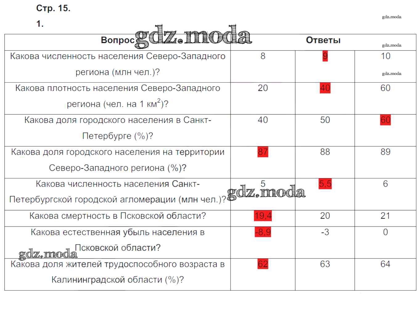 ГДЗ решение к заданию № 15 География 9 класс рабочая тетрадь Таможняя Е.А. Вентана-граф 2017 ФГОС бесплатно на гдз.мода!