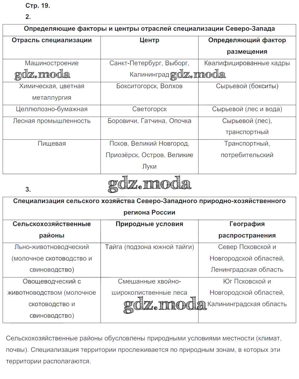 ГДЗ решение к заданию № 19 География 9 класс рабочая тетрадь Таможняя Е.А. Вентана-граф 2017 ФГОС бесплатно на гдз.мода!