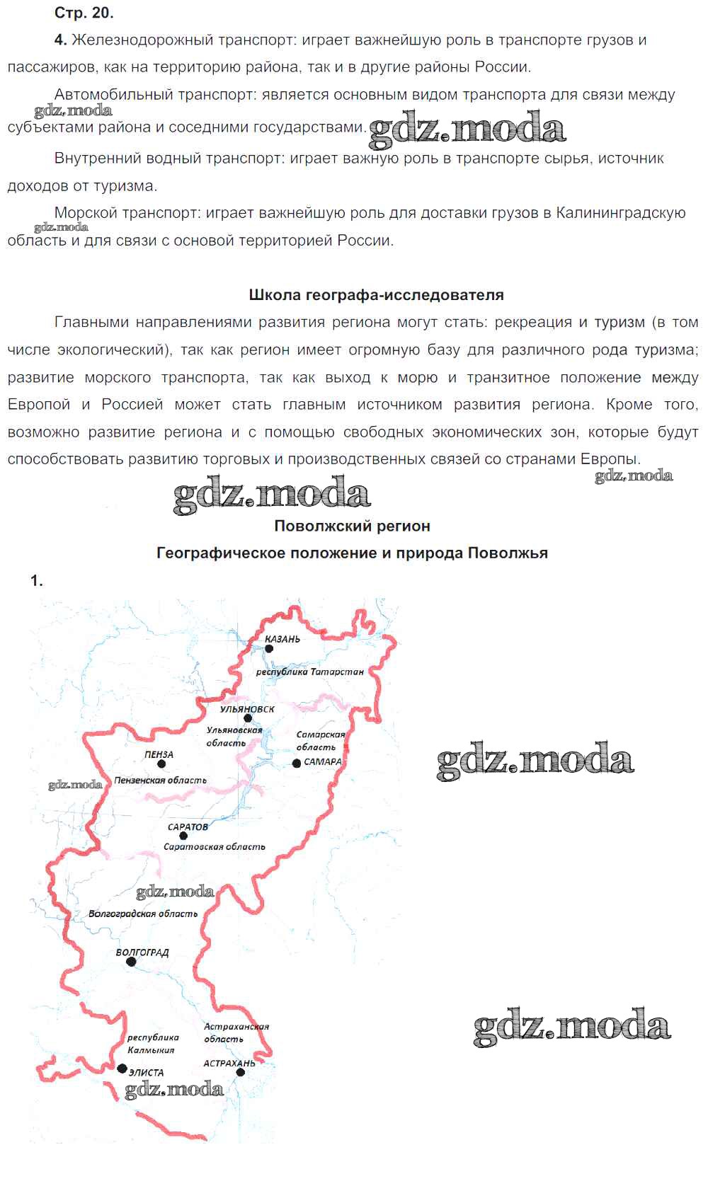 ГДЗ решение к заданию № 20 География 9 класс рабочая тетрадь Таможняя Е.А. Вентана-граф 2017 ФГОС бесплатно на гдз.мода!