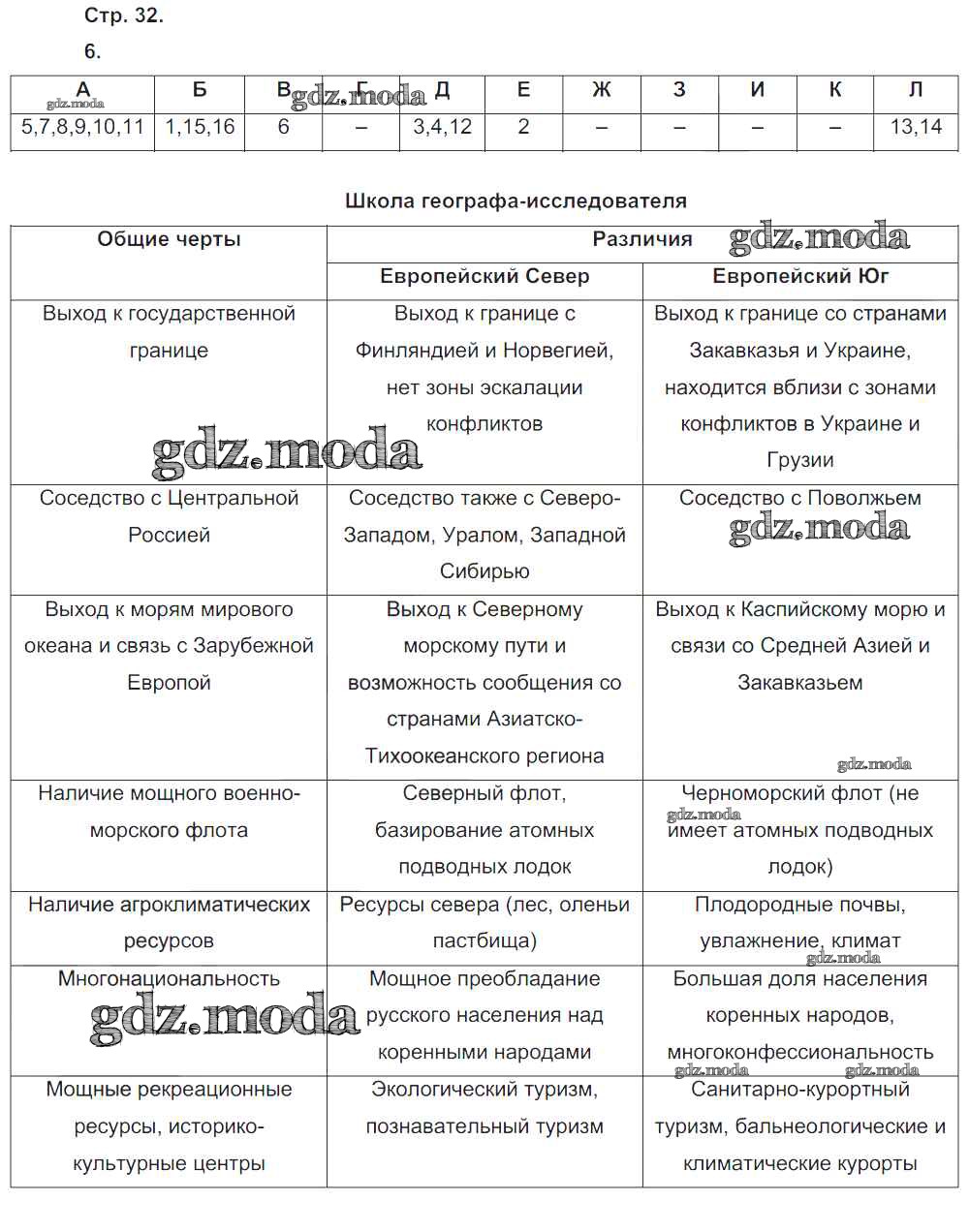 ГДЗ решение к заданию № 32 География 9 класс рабочая тетрадь Таможняя Е.А. Вентана-граф 2017 ФГОС бесплатно на гдз.мода!