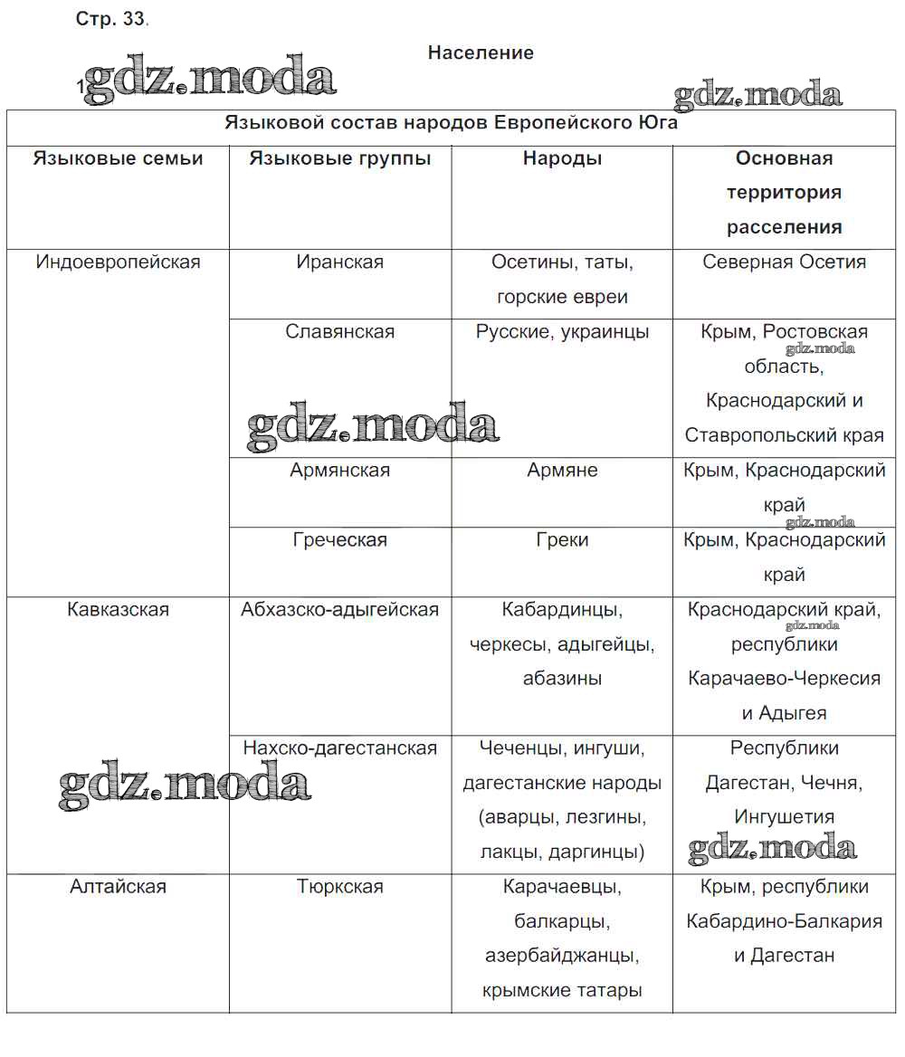 ГДЗ решение к заданию № 33 География 9 класс рабочая тетрадь Таможняя Е.А. Вентана-граф 2017 ФГОС бесплатно на гдз.мода!