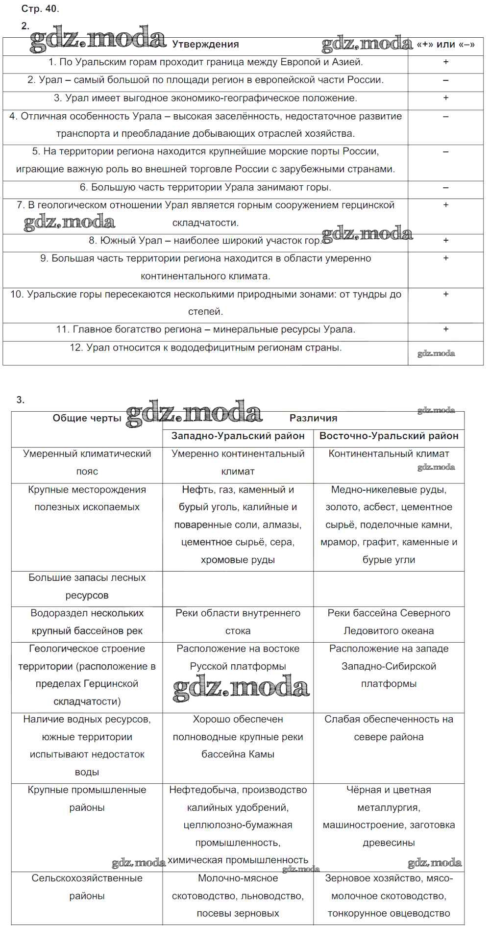 ГДЗ решение к заданию № 40 География 9 класс рабочая тетрадь Таможняя Е.А. Вентана-граф 2017 ФГОС бесплатно на гдз.мода!