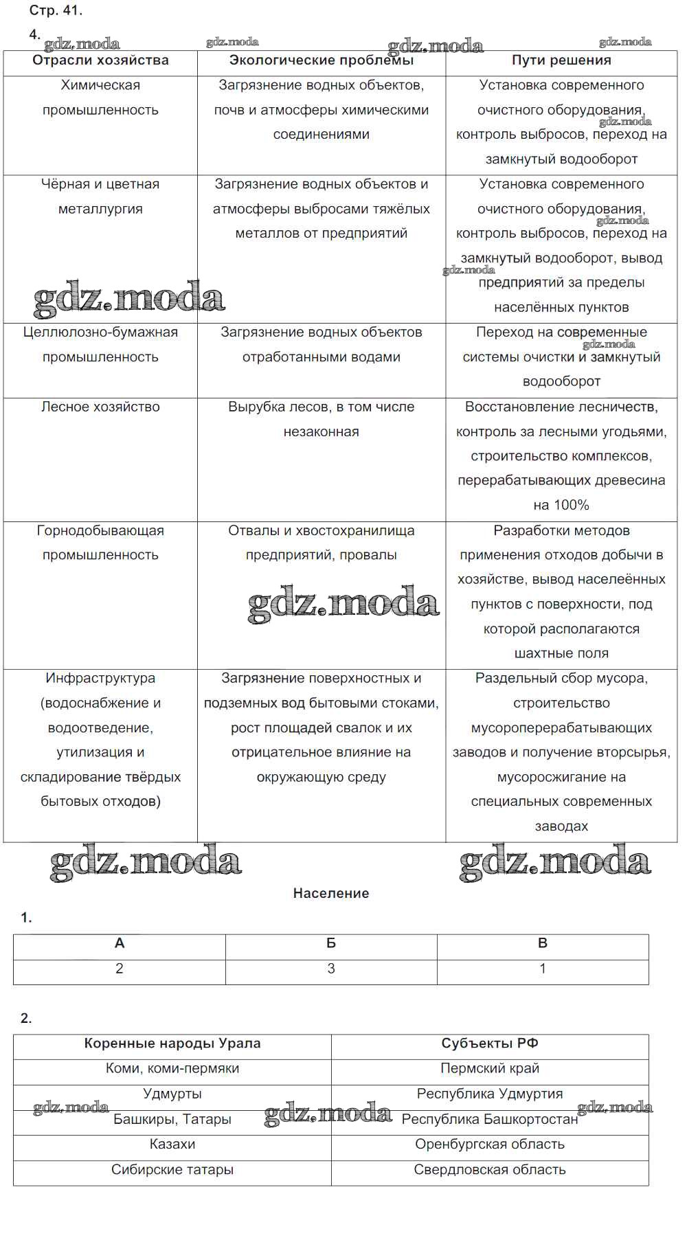 ГДЗ решение к заданию № 41 География 9 класс рабочая тетрадь Таможняя Е.А. Вентана-граф 2017 ФГОС бесплатно на гдз.мода!