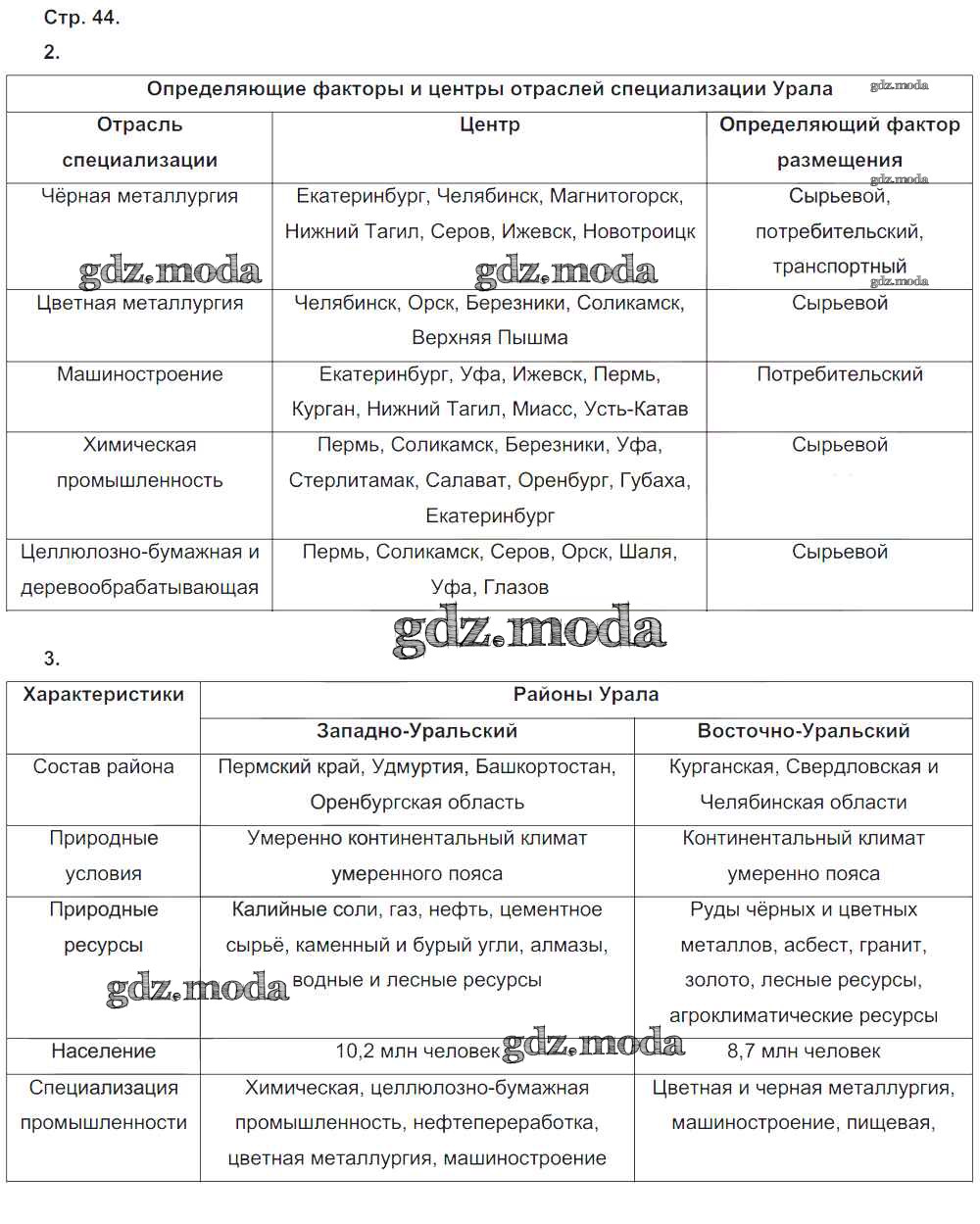 ГДЗ решение к заданию № 44 География 9 класс рабочая тетрадь Таможняя Е.А. Вентана-граф 2017 ФГОС бесплатно на гдз.мода!