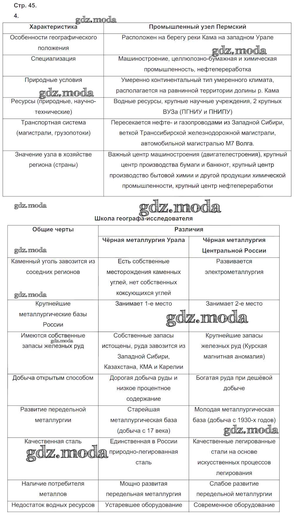 ГДЗ решение к заданию № 45 География 9 класс рабочая тетрадь Таможняя Е.А. Вентана-граф 2017 ФГОС бесплатно на гдз.мода!