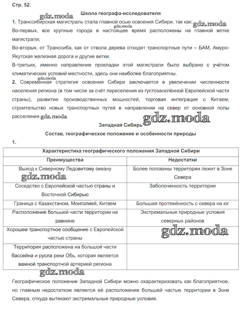 ГДЗ решение к заданию № 52 География 9 класс рабочая тетрадь Таможняя Е.А. Вентана-граф 2017 ФГОС бесплатно на гдз.мода!