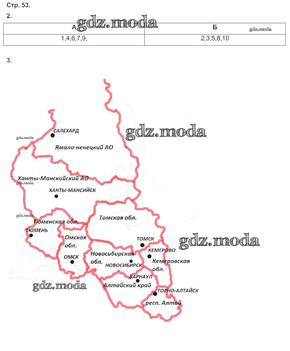 ГДЗ решение к заданию № 53 География 9 класс рабочая тетрадь Таможняя Е.А. Вентана-граф 2017 ФГОС бесплатно на гдз.мода!