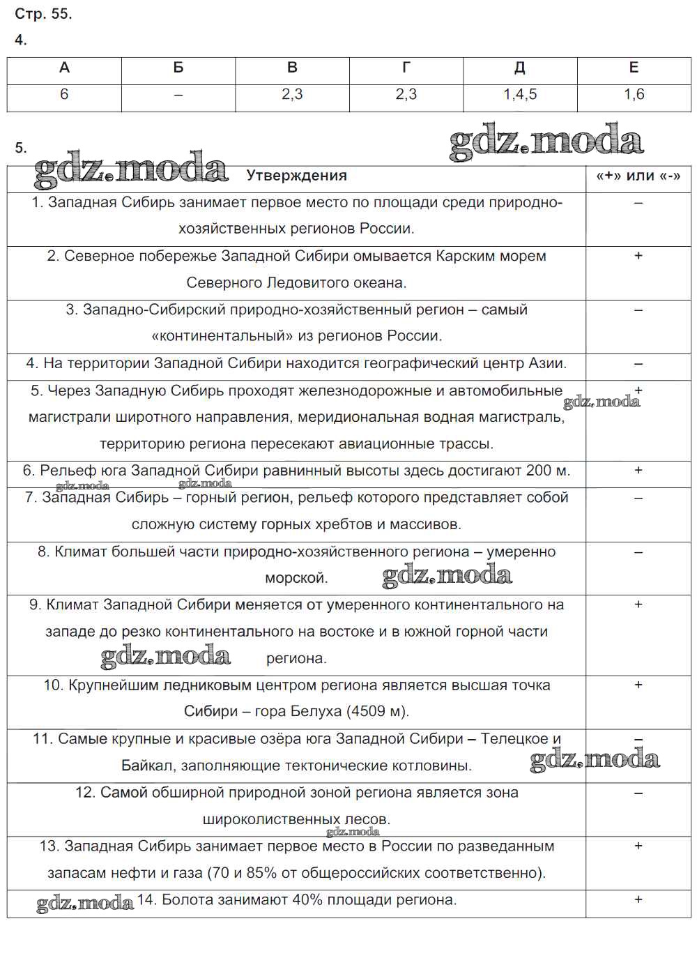 ГДЗ решение к заданию № 55 География 9 класс рабочая тетрадь Таможняя Е.А. Вентана-граф 2017 ФГОС бесплатно на гдз.мода!